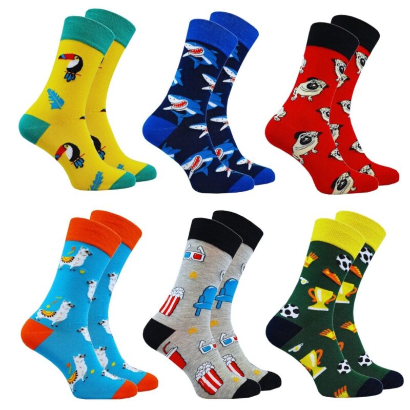 Ten zestaw to więcej niż tylko skarpetki – to mała szuflada pełna charakteru. Znajdziesz tu 6 par kolorowych skarpet z unikalnymi wzorami, które mówią jedno: „mam styl, ale nie biorę siebie zbyt serio”.