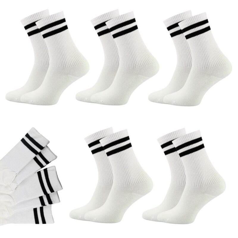 Dwie charakterystyczne paski dodają energii, a uniwersalny biały kolor sprawia, że pasują do wszystkiego — od sneakersów po domowe kapcie.