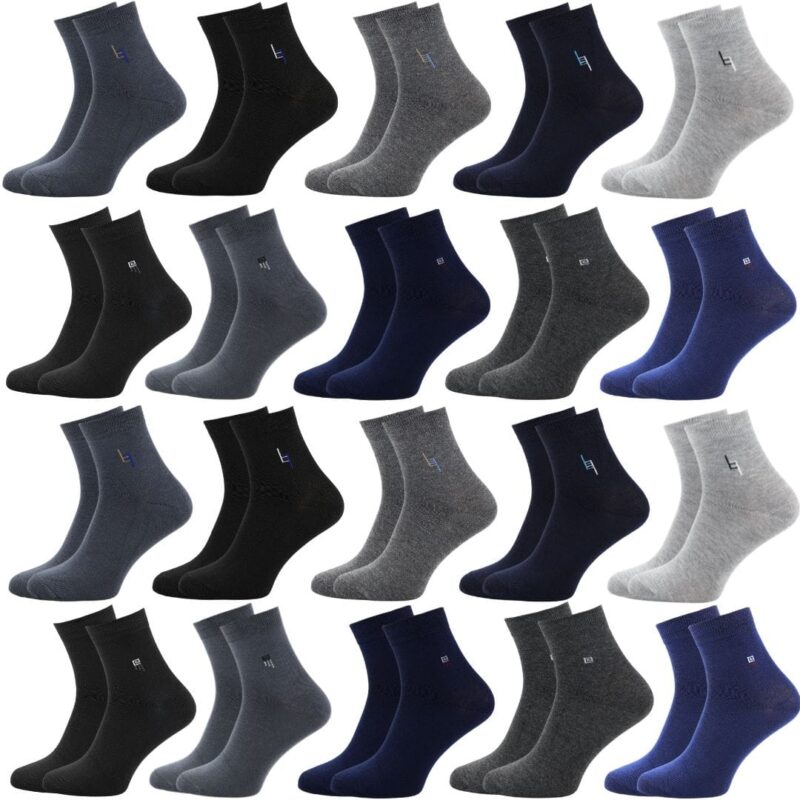Ten zestaw męskich skarpet to dwadzieścia par, które pokazują, że klasyka nigdy nie wychodzi z mody. Miękkie, przewiewne i uniwersalne – pasują do sneakersów, garnituru i codziennego luzu.