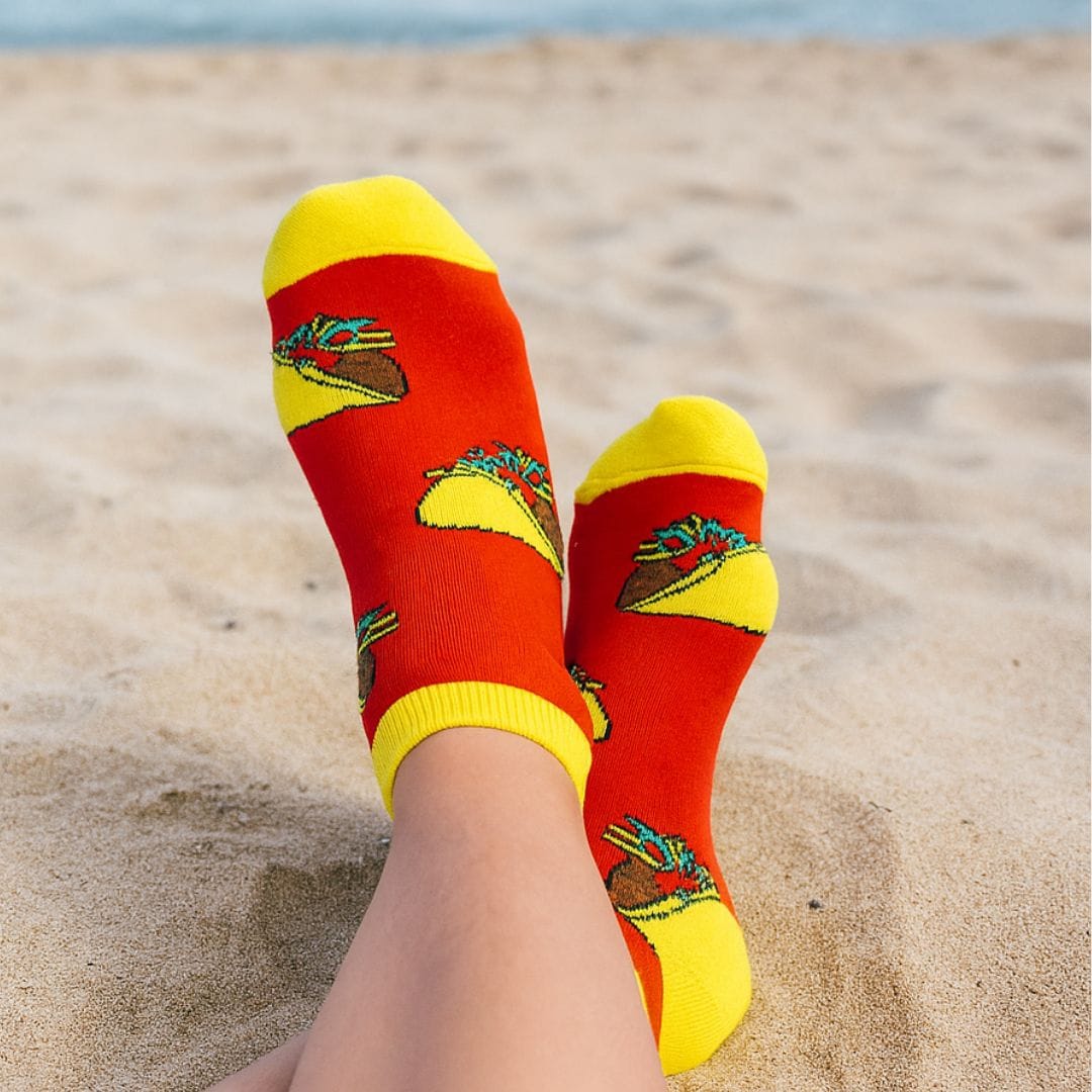 10 par Kolorowych Stopek w losowych, niepowtarzalnych wzorach. Pizza, rekiny, pies w okularach czy kaktus z fochami – nie zdradzimy Ci, co dokładnie znajdziesz. Ale obiecujemy jedno: żadnej nudy, żadnych powtórek, same dobre poranki.