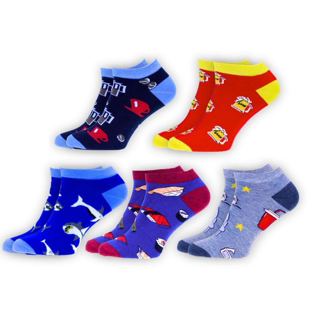 Ten zestaw to nie zwykłe stopki. To pięć par z charakterem, które zabiorą Cię w podróż od porannej kawy, przez sushi lunch, aż po kinowy seans z popcornem i zimnym piwkiem. A gdzieś pomiędzy czai się rekin… bo dlaczego nie?